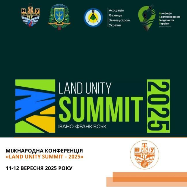 11–12 вересня у м. Івано-Франківськ відбувся міжнародний саміт Land Unity 2025, організований за підтримки Міністерства економіки, довкілля та сільського господарства України та Асоціації сертифікованих геодезистів України.
